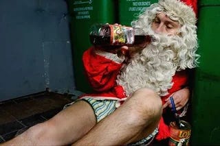 The best Santa I worked with used to invite me back to the dressing room of the tuxedo rental shop and encourage me to take shots of Bushmills on our break. When he got a greedy brat with an endless list of demands, he’d give the kid a pinch. That Santa later became a priest.